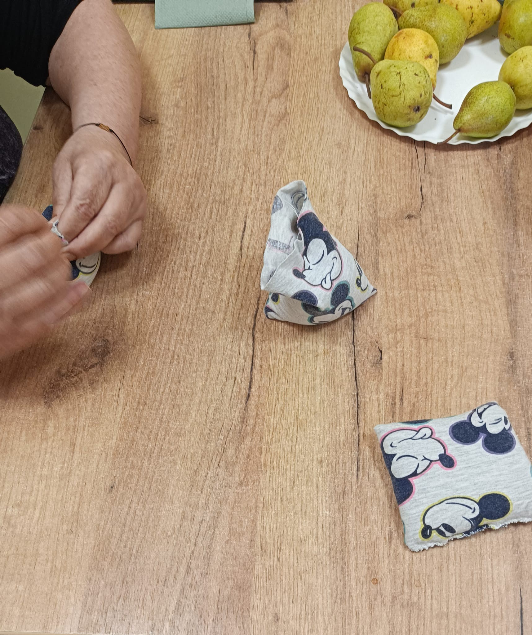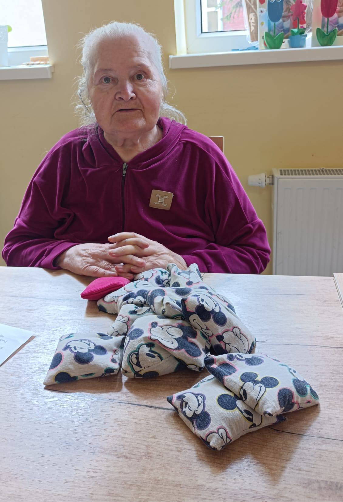 Podczas zajęć w naszym Domu Pomocy Społecznej mieszkańcy mieli okazję spróbować swoich sił w szyciu małych woreczków wypełnionych kaszą. Każdy krok – od przygotowania materiału, przez zszywanie, aż po wypełnianie – wykonywany był z dużym zaangażowaniem i uśmiechem.