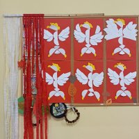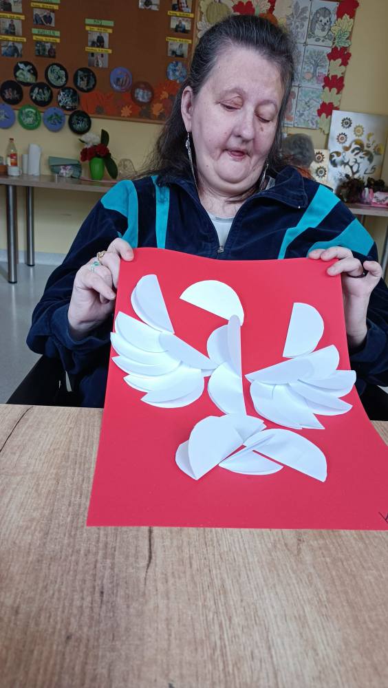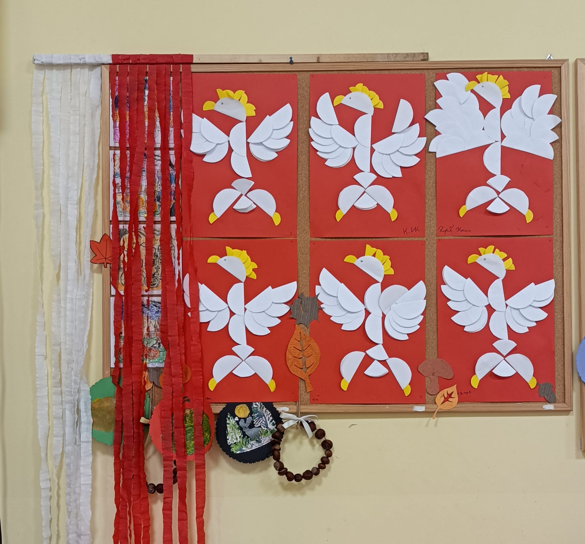 W ramach zajęć plastycznych przygotowywaliśmy dekoracje z okazji Święta Niepodległości. Z kolorowych kartek i papierowych kółek powstały piękne białe orzełki na czerwonym tle – symbol naszej Ojczyzny.