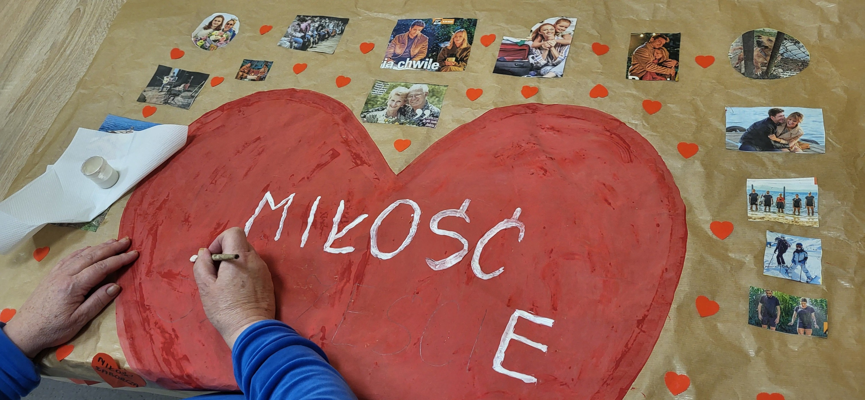 Autorski plakat Walentynkowy uczestników terapii zajęciowej